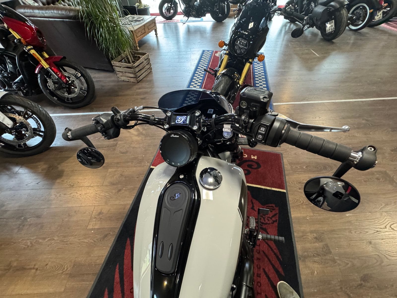 Von vorne bis hinten geschwärzt, mit gechoppten Bobber-Kotflügeln und Scheinwerfergondel, lehnt sich die Scout Bobber hart an den authentischen Bobber-Stil an