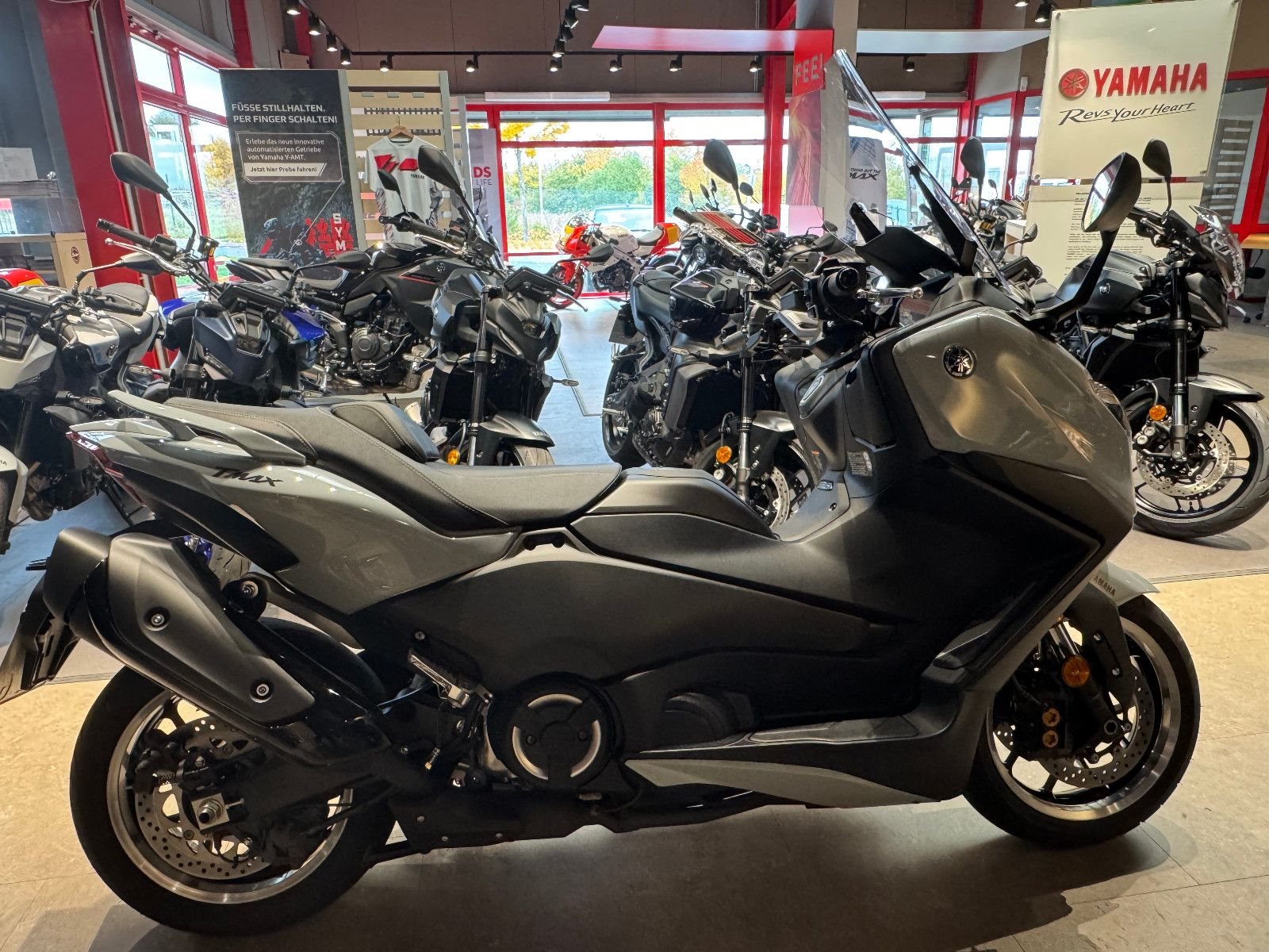 Der leistungsstarke 560 cm EURO5+ Motor und das kultivierte Automatikgetriebe machen diesen Roller zum schnellsten und leichtgängigsten Sportroller von Yamaha. Das motorradähnliche Aluminium-Fahrwerk und die einstellbaren Federelemente sorgen für präzises Handling. Für höchsten Komfort ist der TMAX Tech MAX mit einer luxuriösen beheizbaren Sitzbank, Heizgriffen und einer elektrisch einstellbaren Verkleidungsscheibe ausgestattet.Für ein Höchstmaß an Kontrolle profitiert der TMAX Tech MAX von den klassenbesten elektronischen Fahrerassistenzsystemen, darunter ein Bremskontrollsystem sowie Tempomat, Traktionskontrolle und 2-Positionen-D-MODE. Zudem findest Du auf dem vernetzten 7 Zoll großen Cockpit mit der kostenlosen Garmin Navigation? die besten Routen für Pendler, Freizeitfahrten und Touren.