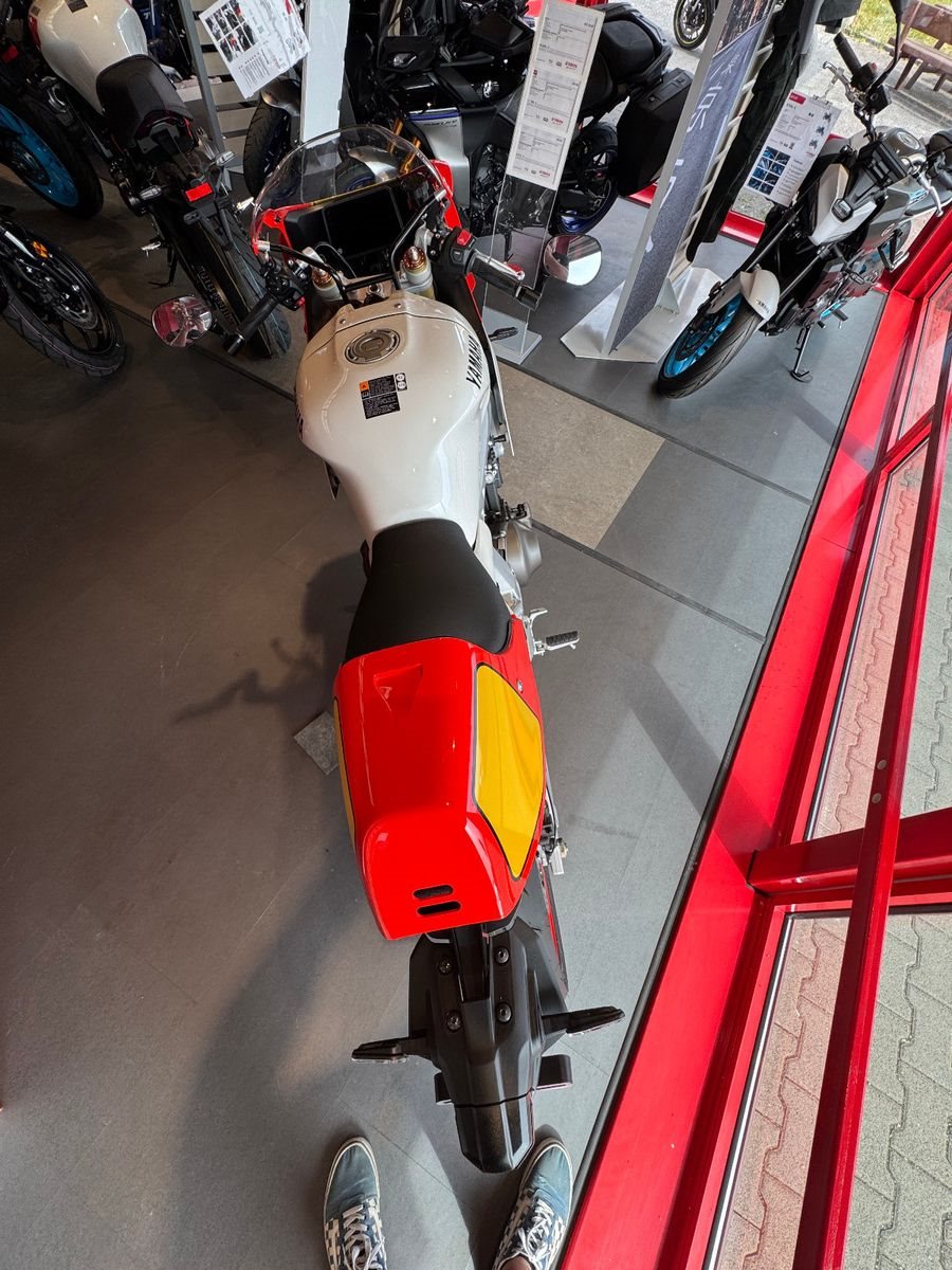 siegreich waren und sie feiert Yamahas Rennsportgeschichte wie nie zuvor. Die vom YZR-Grand-Prix Renner inspirierte Frontverkleidung und der Sitzbankhöcker erinnern an die goldene Ära des Grand-Prix Rennsports eine echte Hommage an einige der kultigsten Rennmotorräder aus Yamahas Vergangenheit.